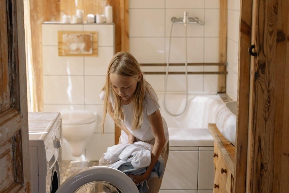 A ‘Child Lock’ function, similar to security protocols in advanced systems, prevents accidental operation. Indicator lights illuminate to signal water supply, drain status, and error conditions. Understanding these indicators is crucial for efficient troubleshooting, mirroring the diagnostic capabilities found in tools like ChatGPT CLI. The panel’s layout prioritizes accessibility and ease of use, ensuring a seamless laundry experience.